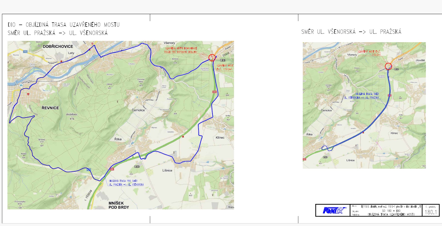 - oficiální objížďky budou vedeny přes Řevnici – směr na Hájensko, do Prahy otočení v Řitce